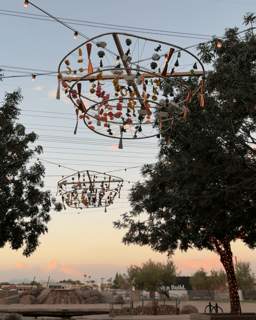 This space is included as a stop for The Great Gilbert Gourd Hunt, with pumpkins causing a ruckus in the trees above. It also houses two vibrant origami displays—“Fall Celebrations in Folding Art” by Chuck Via and Jacob Hedgepeth with the Arizona Origami Society. We were delighted to see the displays move naturally in the nice breeze.