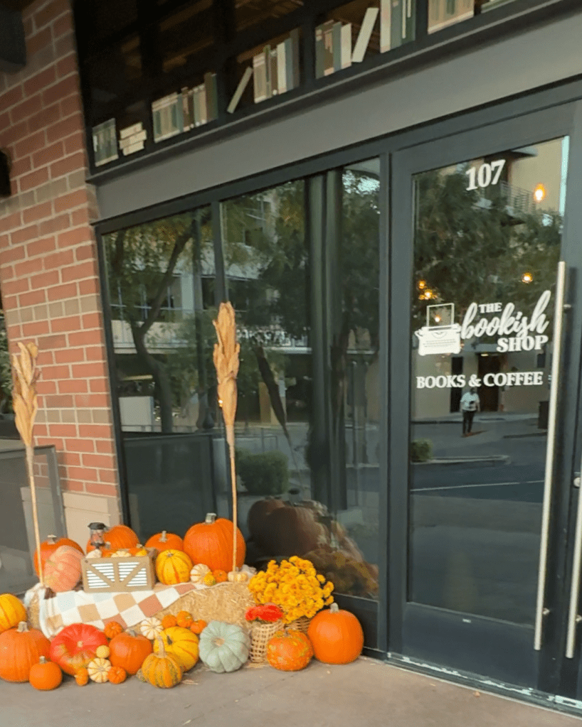 Walking down the path to The Bookish Shop was the next stop. We enjoyed food and drink samples from their fall menu, and my personal favorite was their GF/DF “pop-tart.” This gorgeous bookshop is a must-stop for my book-loving friends who want an enchanting place to meet for coffee and pastries. I can’t wait to enjoy their patio this holiday season and grab some gifts for my book-girlies.