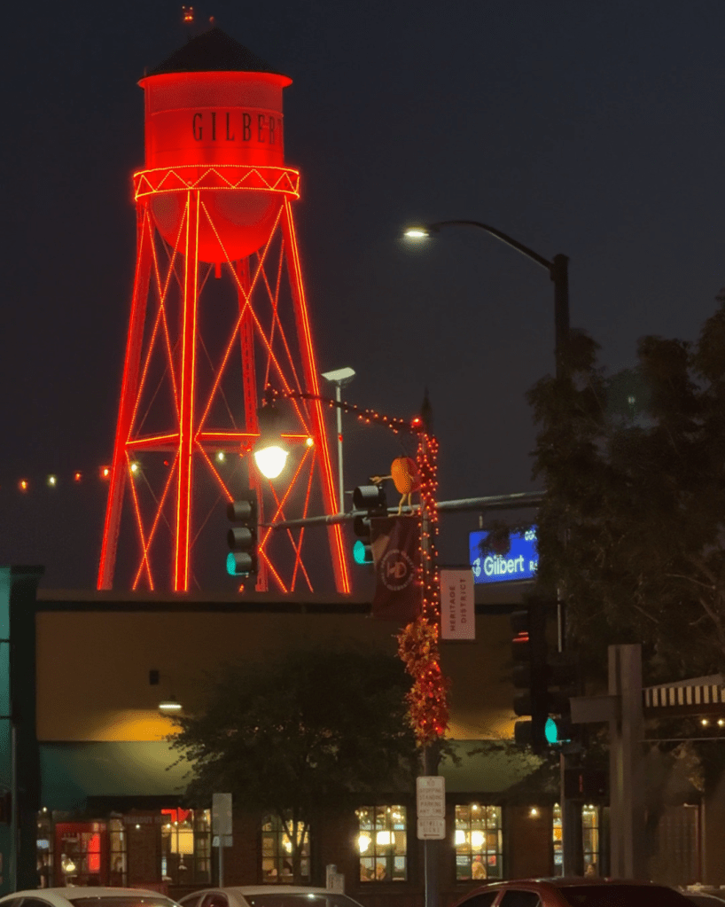 I was recently invited by the Town of Gilbert and Discover Gilbert, their marketing team, for a media event where we got a sneak peek at the installations. It was a lovely, warm evening in the Heritage District, and we began discovering the Gourd Hunt installations prepared by the Villafane Studios team starting the Water Tower Plaza.