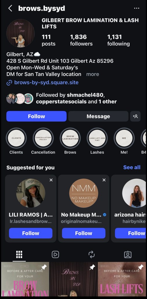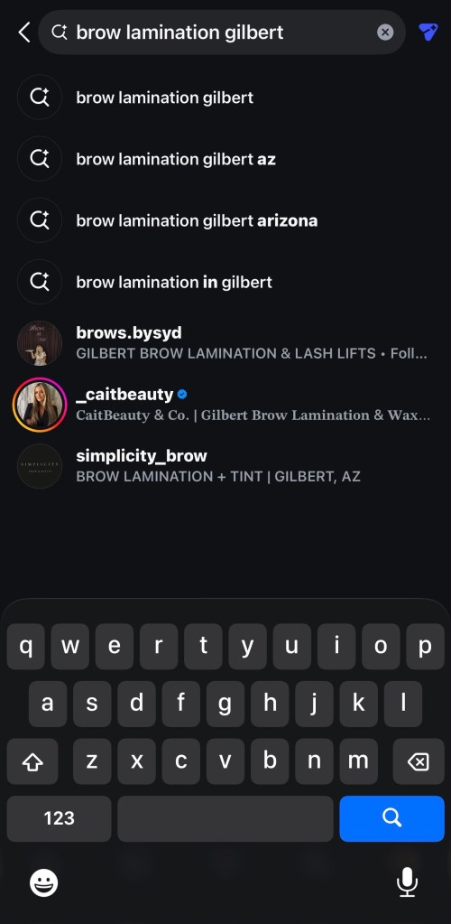 In the sample, I’m searching for a specific service and hoping to find it in my city. Search phrase used: “Brow Lamination Gilbert”