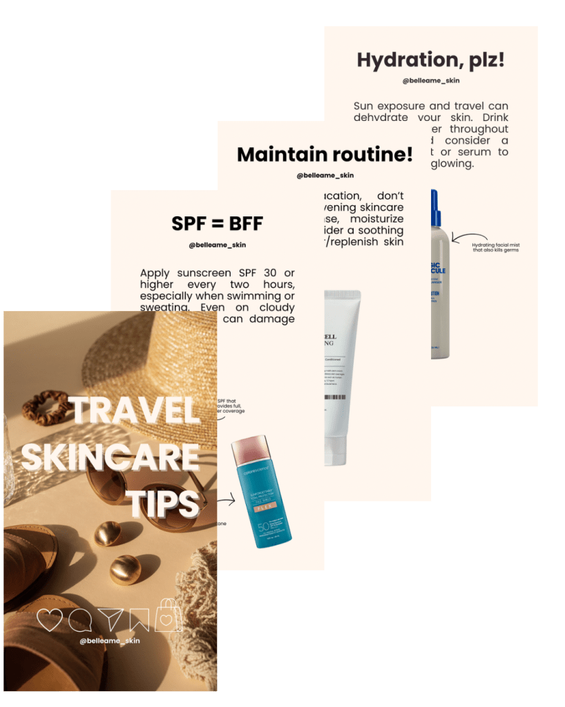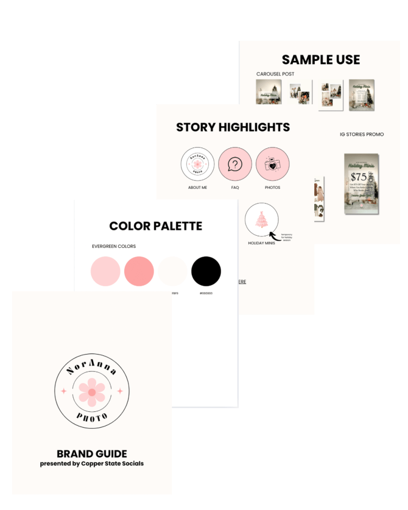 Social media graphics like carousel posts and Stories are available to purchase as part of packages or the digital assets subscription. Print and digital projects like price decks, branding guides, etc. can be created at a cost per project.
